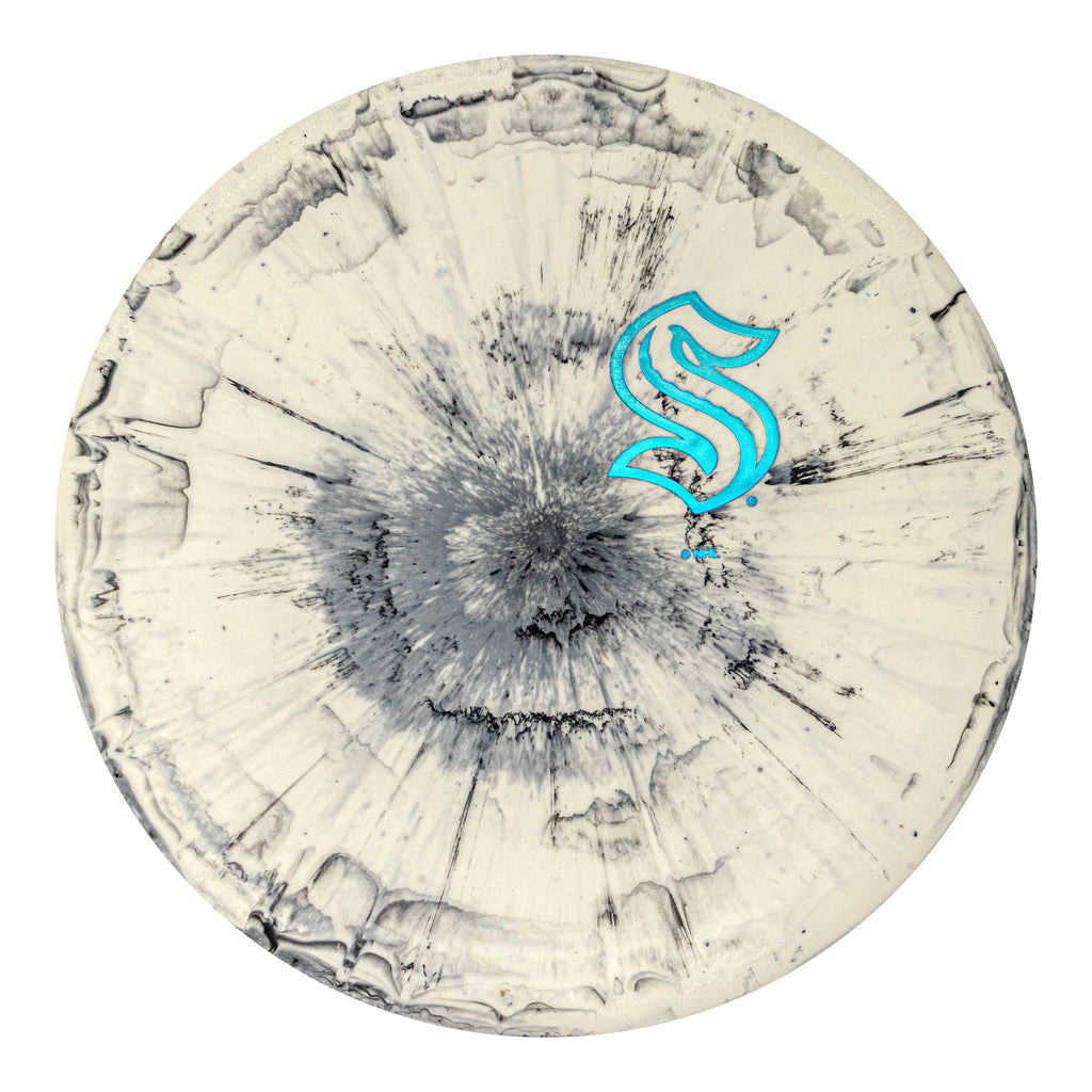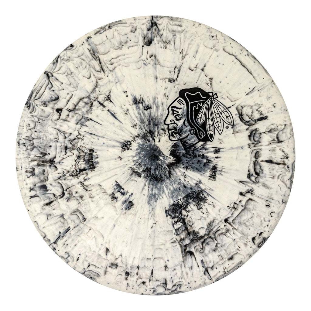 Pick up your favorite team from the Black Ice series, which boasts the team logo in colored foil on a PA-3 300 Fractal. Discs with the Fractal aesthetic treatment utilize a new proprietary processing technique, splashing colors in a complex motif that's distinctive and abstract. It’s calming, chaotic, and completely one-of-a-kind. The Black Ice series brings you a white disc with black Fractal patterns.